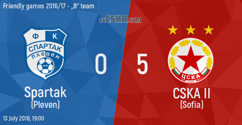 CSKA II won against Spartak (Pleven) with result 0:5 in match from Friendly games 2016/17 - „B“ team played on 13 July 2016 at 19:00 on „Gradski“ stadium, in Lovech.