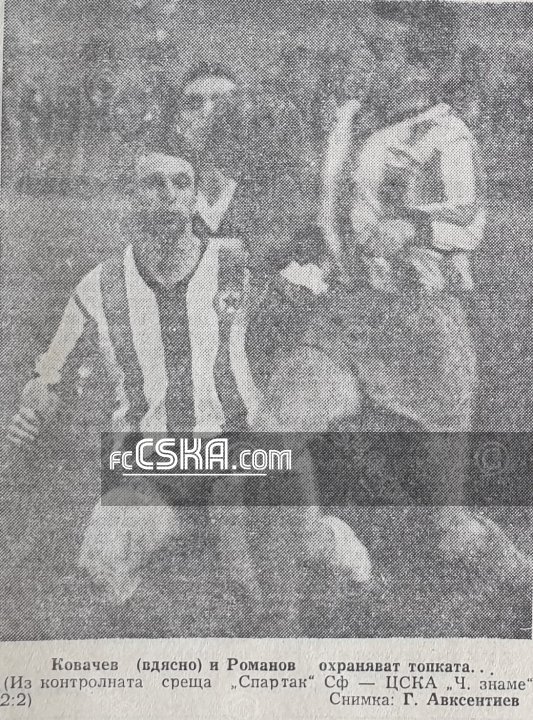 CSKA „Cherveno zname“ draw against Spartak (Sofia) with result 2:2 in match from Friendly games 1965/66 played on 12 February 1966 at 15:00 on „Rakovski“ stadium, in Sofia. goalscorers for the army men were Asparuh Nikodimov and Nikola Tsanev.