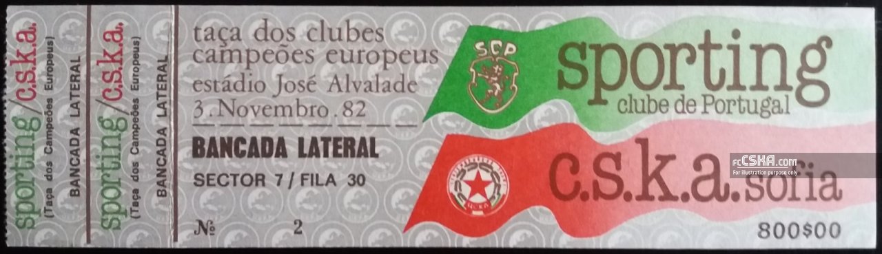 CSKA „Septemvriysko zname“ draw against Sporting (Lisboa) with result 0:0 in match from Round of 16 — Second Leg of European Champion Clubs' Cup 1982/83 played on 3 November 1982 at 23:30