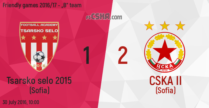 CSKA II won against Tsarsko selo 2015 (Sofia) with result 1:2 in match from Friendly games 2016/17 - „B“ team played on 30 July 2016 at 10:00