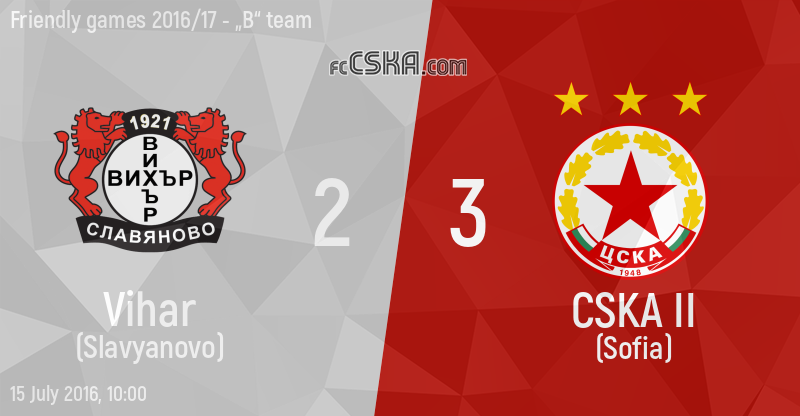 CSKA II won against Vihar (Slavyanovo) with result 2:3 in match from Friendly games 2016/17 - „B“ team played on 15 July 2016 at 10:00 on „Gradski“ stadium, in Lovech.