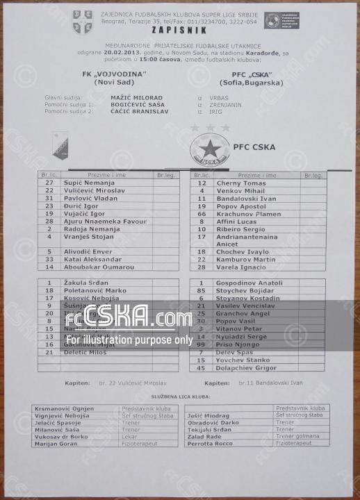 CSKA lost against Vojvodina (Novi Sad) with result 1:0 in match from Friendly games 2012/13 played on 20 February 2013 at 16:00 on „Karađorđe“ stadium, in Novi Sad.